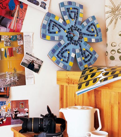 一款普通的花形掛鐘,因?yàn)轳R賽克的參與而精彩。馬賽克拼花在視覺上給人美感,由于沒有填縫,高低錯(cuò)落更有一種立體感,當(dāng)嘀嗒嘀嗒的聲音把你的目光吸引到這朵花上的時(shí)候,你是否聞到春的氣息?