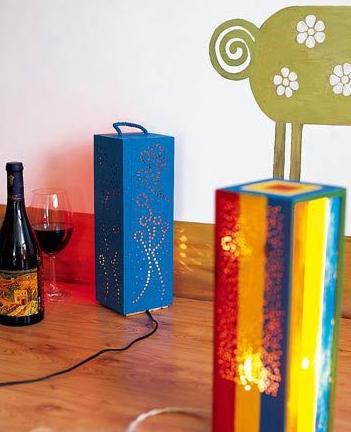 我們童年都做過(guò)紙手工,現(xiàn)在我們舊夢(mèng)重溫。簡(jiǎn)單的材料——卡紙、羽毛;方便的工具——打孔機(jī)、裁紙刀,用做家具剩余的木條,或者任何可以做支架的東西,固定出一個(gè)三腳架,用鐵絲把燈泡固定在三腳架下(不要離木條和紙?zhí)?,有安全隱患),把卡紙打孔或裁出喜歡的圖案。