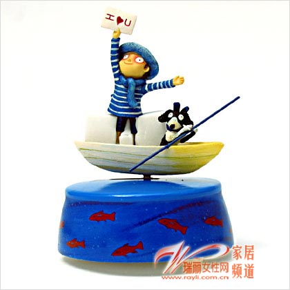 felissimo(芬理希夢)與臺灣漫畫家?guī)酌妆局餐膭?chuàng)作理念,真誠地將其作品中的人物呈現(xiàn)給大家。等船兒輕離熟悉的港灣,那些心里徘徊已久的意愿,只有離開之后,小男孩才敢!說明:樹脂浮雕彩色手繪可動音樂鈴,順時針旋轉(zhuǎn)音樂鈴發(fā)條,小男孩的木舟可以“浮動”起來。