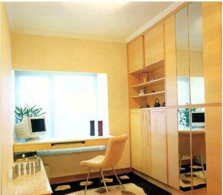 書(shū)房的家具除了要有書(shū)櫥、書(shū)桌、椅子外,兼會(huì)客用的書(shū)房還可配備沙發(fā)茶幾等。書(shū)櫥應(yīng)靠近書(shū)桌以便存取方便,書(shū)櫥中可留出一些空格來(lái)放置一些工藝品以活躍書(shū)房的氣氛,書(shū)桌應(yīng)置于窗前或窗戶右側(cè),以保證看書(shū)、工作時(shí)有足夠的光線,并可避免在桌面上留下陰影。書(shū)桌上的臺(tái)燈應(yīng)靈活、可調(diào),以確保光線的角度、亮度,還可適當(dāng)布置一些盆景、字畫(huà)以體現(xiàn)書(shū)房的文化氛圍。