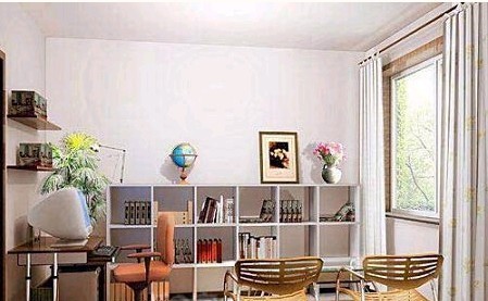 面積充裕的居室中,可以獨(dú)立布置一間書(shū)房,面積較小的居室可以辟出一個(gè)區(qū)域作為學(xué)習(xí)和工作的地方,可用書(shū)櫥隔斷,也可用柜子、布幔等隔開(kāi)。
