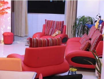 酒紅色:酒紅色就是葡萄酒的顏色,那種醇厚與尊貴會給人一種雍容的氣度、豪華的感覺,所以為一些追求華貴的人所偏愛。沙發(fā)用酒紅色,或在會客區(qū)選一塊老紅色的地毯,會使客廳富麗堂皇。但為不使這種強烈的色調(diào)過于擴張,造成視覺疲勞,可以選用一些黑色的家具,以形成對比。墻面選用明亮的米色,加上一點兒藍、芥辣黃的襯托,會使豪華的格調(diào)中增加一些優(yōu)雅與平易。