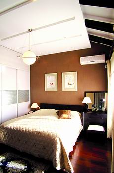 臥室:純?nèi)?、樸?shí)的設(shè)計(jì)風(fēng)格,低調(diào)色彩沉著穩(wěn)重,絲光暖棕色壁紙,平衡的k>線條貫穿整個(gè)空間。中式與現(xiàn)代吊燈的共融,讓整個(gè)空間沉浸在純樸的主題之中,沁透出自然的風(fēng)情及深厚的文化底蘊(yùn),讓人感悟、領(lǐng)略著生活棲居之美。