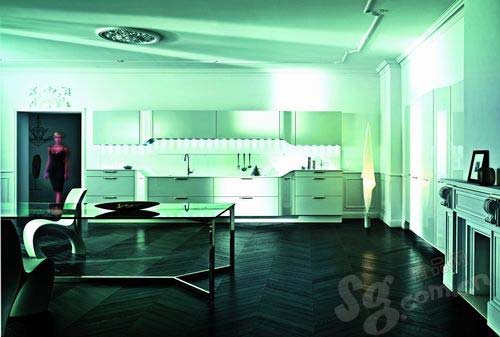 家庭娛樂化是今年流行趨勢(shì)的重要方向,非常讓人驚喜,比如廚房在國(guó)際領(lǐng)域已被廣泛應(yīng)用為“第二客廳”,超薄液晶電視的鑲嵌隨處可見。而以往只用作廳柜的燈光效果也大量出現(xiàn)在廚房中,各種電腦控制的LED燈源變幻交錯(cuò),讓廚房充滿生活情趣。配以高科技的衛(wèi)浴產(chǎn)品同樣很多,多功能浴缸擁有紅外、磁療、沖浪等作用,在設(shè)計(jì)上也打破了以前多洞式、很外向的款式,突出整體流暢感。