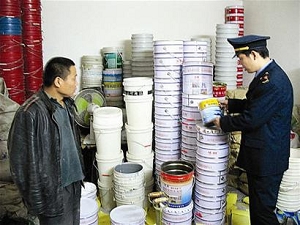 細(xì)心的網(wǎng)友會發(fā)現(xiàn),在我們網(wǎng)站的爆光中,幾乎常出現(xiàn)某某無證生產(chǎn)經(jīng)營 的涂料企業(yè)被查獲或罰款的報道,這些無證企業(yè),一般生產(chǎn)出來的產(chǎn)品所含的有毒物不是嚴(yán)重超標(biāo),就是根本不能使用的假冒涂料,不但嚴(yán)重危害消費者的人身和財產(chǎn)安全,更對有生產(chǎn)許可證的正規(guī)企業(yè)造成了極大的負(fù)面影響。而近年來,在巨大的利益誘惑下,生產(chǎn)、銷售假冒名牌油漆的違法犯罪活動越來越猖獗,國內(nèi)涂料市場中充斥著大量假冒偽劣涂料產(chǎn)品,“傍名牌”“山塞涂料”事件時有發(fā)生,而這些違規(guī)涂料大多數(shù)都是由那些無生產(chǎn)許可證的小廠產(chǎn)生而出的。而在中國,這樣的小廠子卻不在少數(shù),實在令人堪憂。