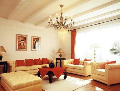 客廳的天花板和地板的設(shè)計要遵從“天輕地重”的原則,天花板的顏色要以淺淡為主,地板的顏色要相對深一些。如果上面顏色深,下面顏色淺,就會給人頭重腳輕的感覺。天花板若有橫梁,人坐在橫梁下容易造成精神緊張,要用一些美觀藝術(shù)的方式把橫梁巧妙地隱藏起來。