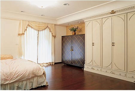 帶點法式宮 華麗質(zhì)感的主臥室,地面鋪設(shè)質(zhì)地溫暖的寬版木地板,溫暖的特質(zhì)特別受到主人的鐘愛。