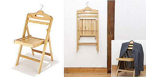在日常生活中,折疊式椅子隨處可見,因為它可以有效地節(jié)約寶貴的空間。不過對于家里空間過于局促的朋友,即便是折疊起來的椅子,恐怕還是不能完全令人滿意,那何不把椅子掛到空無一物的墻上去呢?于是設(shè)計師就將椅子的椅背直接設(shè)計成了衣架的樣子,平時可以直接將衣服掛在上面,當(dāng)椅子不用時,還可以像掛鉤一樣將椅子直接掛在墻上,多方便呀!