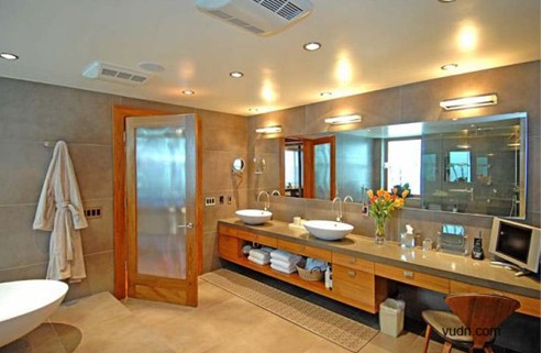 平面功能的另一重點(diǎn)在于衛(wèi)生間室內(nèi)的設(shè)計(jì)。別墅衛(wèi)生間個(gè)數(shù)較多、功能劃分較細(xì)、不同的空間大小針對(duì)的使用者也相對(duì)不同。而別墅作為獨(dú)棟建筑, 上下水路改造的可行性為洗手間功能的調(diào)整及個(gè)性化設(shè)計(jì)提供了條件。