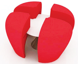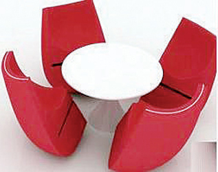 其實,這只不過是一套創(chuàng)意獨特的緊湊型休閑椅而已。在每把椅子上都設(shè)計了一個凹槽,它可以將桌子插到椅子中,而且每把椅子也都被設(shè)計成了直角,如果在不用時只要將它們巧妙地組合在一起,就可以很好地將桌子包裹起來,就如一只碩大的花苞,不了解實情的人是絲毫看不出’廬山真面目’的。 裝飾裝修