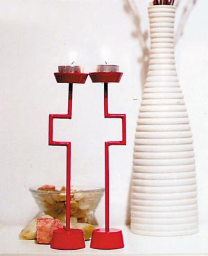 從傳統(tǒng)出發(fā),找到現(xiàn)代契合點。木質(zhì)燭臺’石鎖’、’木舟’的形象在傳統(tǒng)文化中本身就有相親相愛的寓意,化身為燭臺后,更具有實用功能。 上海裝潢網(wǎng)