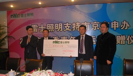 11月7日,國內(nèi)照明行業(yè)領(lǐng)軍企業(yè)雷士照明向南京2014年第二屆夏季青年奧運(yùn)會(huì)申辦委員會(huì)捐贈(zèng)200萬元,支持南京的申辦行動(dòng)。這是自2007年8月南京代表中國申辦青年奧運(yùn)會(huì)夏季運(yùn)動(dòng)會(huì)以來接收的第一筆社會(huì)捐贈(zèng),同時(shí)也意味著南京申辦青奧會(huì)進(jìn)入沖刺階段。