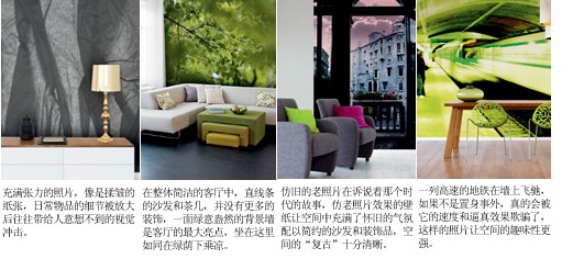 隨著各種“模仿”秀的不斷升級,壁紙也緊跟時尚的腳步,仿照片效果的壁紙帶來了強烈的視覺沖擊力,把空間的裝飾效果推上頂點。