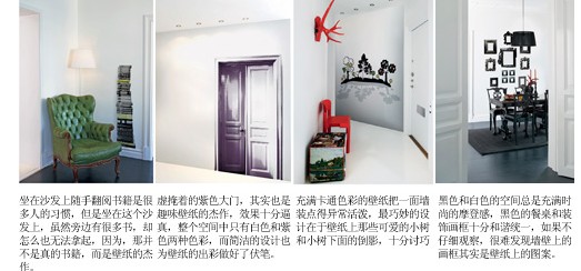 整體效果:充滿趣味效果的壁紙總是能讓你在恍然大悟之后,報以會心的一笑,它們可以出現在你不經意的每個空間,在你沒有發(fā)現的時候,根本體會不到它的特別,一旦被你識破了其中的端倪,壁紙的趣味必然會被你樂意拿來炫耀,一扇虛掩著的大門,真的走向它你才會發(fā)現,這是一張鋪滿了壁紙的墻壁,壁紙逼真的效果令所有人驚訝,想要讓壁紙的趣味性發(fā)揮到極致,一定要在家具和色彩上與壁紙統(tǒng)一,才能達到配合壁紙的最佳效果,或者把家具精簡到少之又少,令所有的焦點都集中在壁紙,以凸現壁紙的趣味設計。