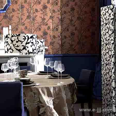 這間搶眼的臥室,采用了時(shí)尚的瑞士絨面墻紙?jiān)O(shè)計(jì),配上精心設(shè)計(jì)的鼓形燈罩和綢緞桌布,讓人胃口大開。用這樣醒目的色彩創(chuàng)造一個(gè)屬于自己的個(gè)性餐廳,比如壁紙下方和椅子都用了深藍(lán)色,這樣就更好的襯托出花紋設(shè)計(jì)。