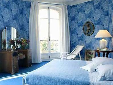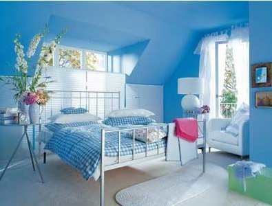 藍(lán)色主臥室,讓最平淡的日子也香艷起來(lái),香艷這個(gè)詞,在古時(shí)候也是用來(lái)形容女子閨房的。不過(guò),顯然,現(xiàn)代的香艷才是更符合它的字面意義的。所謂艷,即明艷。強(qiáng)調(diào)的是色彩,并且是濃烈而明亮的色彩,愛(ài)琴海一般的冰藍(lán)、山茶花一樣的純紅、檸檬原色的明黃,以及泛著光彩的亮白,只有春天的水果和鮮花的顏色才有資格被一一臨摹。而香,則和那一抹存在于四周卻不得描摹形狀的溫馨氣味一樣,不是一盞冰藍(lán)的水晶燈,或者一套淡綠的茶具、一雙亮紅的塑膠拖鞋,而是這些所有細(xì)枝末節(jié)的總和。沒(méi)有實(shí)體,而只能借助一切精致的道具,從骨髓往外滲透的這種情調(diào),一定要給它一個(gè)稱謂的話,姑且我們可以叫它小資。