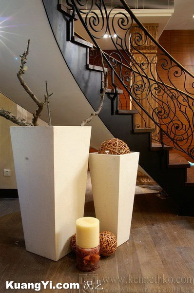 ▲螺旋向上式樓梯。這種樓梯優(yōu)點(diǎn)在于具有強(qiáng)烈的動(dòng)態(tài)美,多在廳堂偏中部位旱地拔蔥。由于不靠墻,圍欄不能借助墻體,需加上透空欄桿,這就更好地表現(xiàn)了樓梯的藝術(shù)之魅。但這種樓梯由于每一段跨度較多,因此安全性較差。有老人和學(xué)齡前兒童的家庭,建議慎重使用。