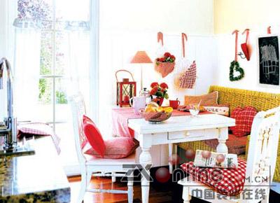 方案三:色澤鮮艷的布藝飾品也會提升餐廳的圣誕指數(shù),粉紅色的餐布、格子餐墊、餐巾、溫暖的靠墊或墻上的布藝掛飾等都會烘托出考究浪漫的品位。上海裝潢網(wǎng)