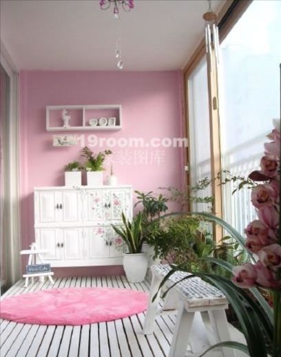 除綠色植物、花卉等能起到裝飾陽臺的作用外,陽臺側(cè)墻面、地面也是裝飾美化的重點。例如,可以整齊有致地在側(cè)墻上掛置富有裝飾韻味的陶瓷壁掛、掛盤等裝飾品,有的隔墻還可做成博古架的形式,以供放置裝飾器物。在光滑素雅的墻面上,也可掛置用柴、草、葦、棕、麻等材料做成的編織物。陽臺的地面可利用舊地毯或其他材料鋪飾,以增添行走時的舒適感。