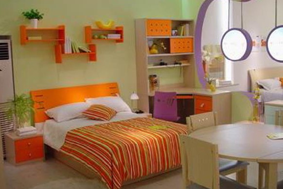 兒童的精力充沛,活動量大,為了盡可能節(jié)省空間,留出最大空間用做活動天地,家具以靠墻擺放為佳。床位可選擇光線相對暗一些的墻角,緊靠著的是在窗戶旁的小書桌,在床的另一側(cè),用來擺放衣柜和收納。