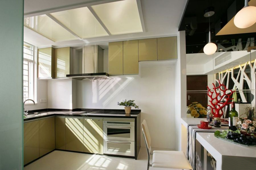 休息與工作,時間與空間,可更大限度地互補互換,以獲得更大的彈性和自由度,將不同的功能融合在一個有不明顯界限的空間內。廚房間也可以如此舒服。半開放式的廚房以餐桌相隔。