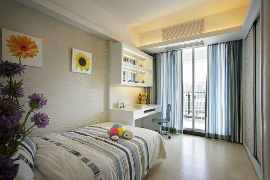 在典型的現(xiàn)代風格設計中,裝飾的主題往往是窗外的風景,或是一墻時尚的壁紙,或是一套漂亮的椅子,或是個性十足的飾品擺件。這樣的書桌,簡潔方便且非常實用,擺放在臥室里非常適宜。