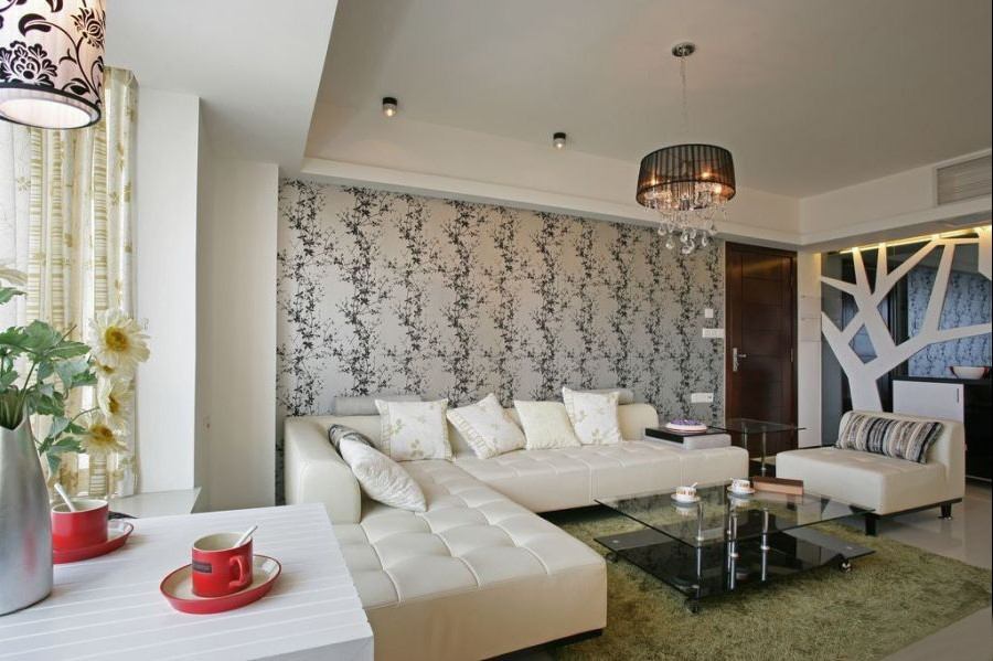 時尚的沙發(fā)背后是黑白銀花卉韓國壁紙,詮釋了現(xiàn)代年輕人對時尚的熱衷與追求。