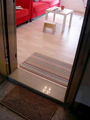 從門口張望進(jìn)來(lái),客廳只有三米左右的深度,所以買了靠背極薄的沙發(fā)