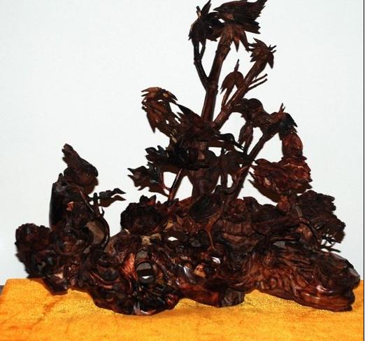 (拍品之一:海南黃花梨根雕鳥語花香)