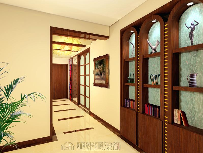 諾伯修茲在《實(shí)存,空間的建筑》一書中指出:“空間的概念并不具單一性。除了產(chǎn)生具體活動(dòng)的空間以外,尚有瞬間取向的知覺空間、具穩(wěn)定意象的生存空間、物理世界的認(rèn)知空間、藝術(shù)空間、單純邏輯的抽象空間以及美學(xué)空間?!?nbsp;光與影在空間情境的塑造上是不可或缺的應(yīng)用元素之一。白天因日照時(shí)間的流動(dòng)而產(chǎn)生漫射入室的光、影,隨著自然的軌跡變化:在夜間,利用人工光源的交替、轉(zhuǎn)換,而產(chǎn)生不同的光影情境,成為設(shè)計(jì)本案的精神。 由于房間本身足夠的使用面積與合理的布局,因此無須在空間結(jié)構(gòu)上大玩蒙太奇、解構(gòu)、整合這些常見手法在這里都難覓其蹤。只是將書房與客廳、過道之間的隔斷拆改為玻璃材質(zhì),這樣使書房與客廳、過道之間有連慣性,而且空間上也顯得更加通透。在這里,設(shè)計(jì)師同時(shí)運(yùn)用色彩和不同的材質(zhì),如冰山玻璃、軟木材料來豐富空間的層次和變化,仿佛不經(jīng)意間選擇的帶有紋理的軟木,便使純粹的直線架構(gòu)起的空間自然地避免了走向極端的線的僵局。在燈光方面運(yùn)用射燈、落地?zé)?、吊燈等不同形式的燈光,來烘托和體現(xiàn)不同空間、不同材質(zhì)的變化,在色調(diào)方面,同樣主要以暖色調(diào)為主,追求的是整體的和諧統(tǒng)一。玻璃看似與暖色主題相沖突,但也帶來了產(chǎn)生變化的機(jī)遇,好象向我們闡述了主人的一種處事哲學(xué)。