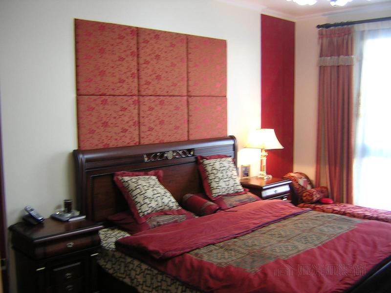 臥室中床頭胡桃木在紅色壁紙的襯托下,構(gòu)成了臥室的主題——沉穩(wěn)與和諧。羊皮床頭燈和室外透進(jìn)的光線相呼應(yīng),造就了可變換的光環(huán)境,靠近窗邊的貴妃榻營造出溫馨高雅而又浪漫的氣息。試想在這里揉揉發(fā)酸的雙眼,把自己仍進(jìn)軟軟的大床,朦朧中墻壁上光與影奏響的和諧旋律,是否會(huì)讓人在半夢(mèng)半醒間飄飄燃起來?大腦神經(jīng)此時(shí)可以拒絕大千世界一切的繁蕪叢雜,遠(yuǎn)離精神領(lǐng)域所有的煩惱壓抑,只讓心靈在次深呼吸。在使用功能上,設(shè)計(jì)師為主臥設(shè)立了獨(dú)有的大更衣間,使主人在使用上更方便、更具私密性