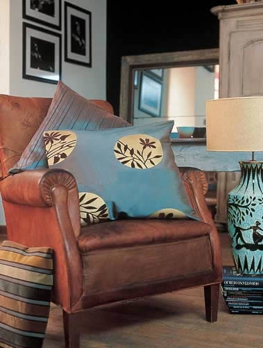 為高級(jí)而古老的真皮坐椅搭配靠墊,具有中國(guó)詩(shī)畫韻味的圖案成為獨(dú)特而高貴的選擇。清雅的灰色透露著濃縮的文化韻味,與另一個(gè)灰色緞面靠墊搭配起來更顯高貴,而坐椅旁邊的條紋靠墊向古老的氣氛中投入了古典的西方元素,讓整個(gè)角落的風(fēng)格多元起來。
