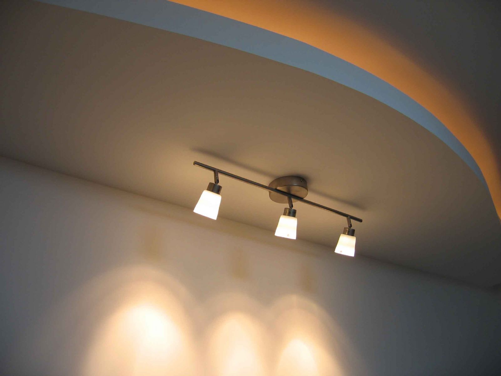 不少年輕人嘗試用射燈代替吊燈,效果也不錯。安裝時只要將底兒倒過來固定在開花板上即可。當(dāng)居室較長或帶有酒柜等時,以安裝一排射避燈為佳。如果居室是正方形的,則可在天花板四周裝上射壁燈,但開關(guān)最好分開控制,這樣,全部開啟時,就成為居室的主體照明,單獨開啟時,則是一盞射燈照到一角,別有一番意境。