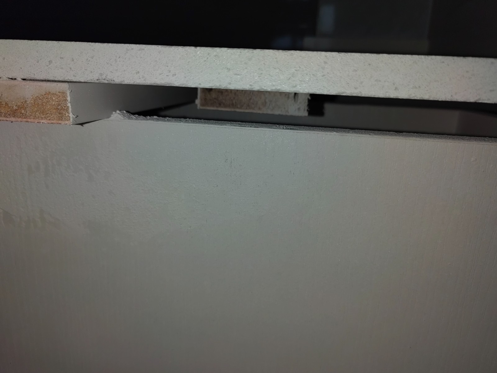 煤氣灶臺(tái)石英石下面沒(méi)有復(fù)合木板托住或空洞