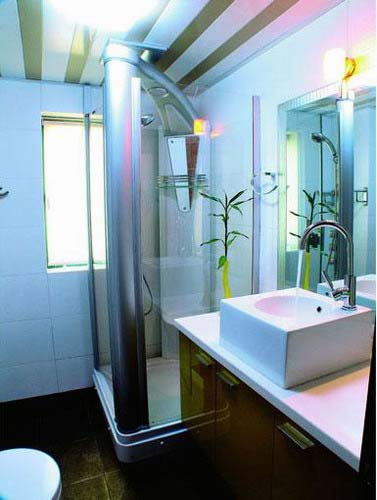 空間不大,也許可以說(shuō)有點(diǎn)兒局促。但即使在這么個(gè)小小的角落,衛(wèi)浴的主人都沒(méi)忘了給環(huán)境打上“格子”。在柔和的主色調(diào)中,粗獷的藍(lán)色瓷磚勾勒出幾道輪廓,整個(gè)空間立刻顯得整齊了很多。另外,黑色的浴巾和紅色的毛巾球在背景色中非常醒目,給人眼前一亮的感覺(jué)。衛(wèi)浴的主人不是一個(gè)可以忍受平庸的人,他喜歡通過(guò)小心思來(lái)創(chuàng)造生活的亮點(diǎn)。不要以為這種亮點(diǎn)僅限于視覺(jué)上的小小刺激,在索然無(wú)味的生活中,他會(huì)時(shí)不時(shí)創(chuàng)造些小驚喜。