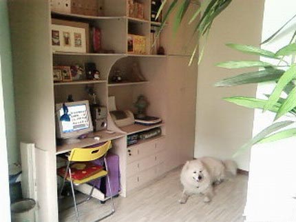 哈哈,下面出場的是我的書房,先來個從門照出去的樣子,我家的門都是拱形的,別人都說像窯洞 嘻嘻,當(dāng)時做這個門的時候 也很考師父的手藝哦,做不好,就不能吻合了 我選擇的是淺綠色的,好象在立邦里面叫風(fēng)鈴綠。