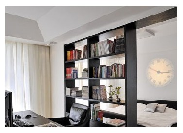 臥室與書房間僅由書架作為空間的隔斷,隔而不斷,讓空間保持完整性。