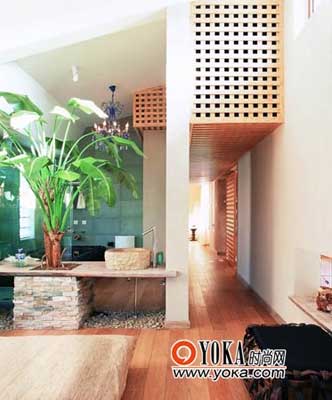 婆娑的芭蕉樹(shù)、粗糙的石臺(tái),看上去像是把外面的花園搬進(jìn)了屋里。從生態(tài)產(chǎn)品到生態(tài)家居,隨著國(guó)人環(huán)保意識(shí)的提高,越來(lái)越多的人把保持生態(tài)平衡的綠色觀念引入了生活。與傳統(tǒng)設(shè)計(jì)相比,“生態(tài)家居”更加注重在居室中生理與心理的健康,在室內(nèi)空間的自然性、材料、濕度、溫度等方面有著更為合理的統(tǒng)籌規(guī)劃,從而在更高更廣的范圍內(nèi)營(yíng)造舒適、自然的居住感覺(jué)。