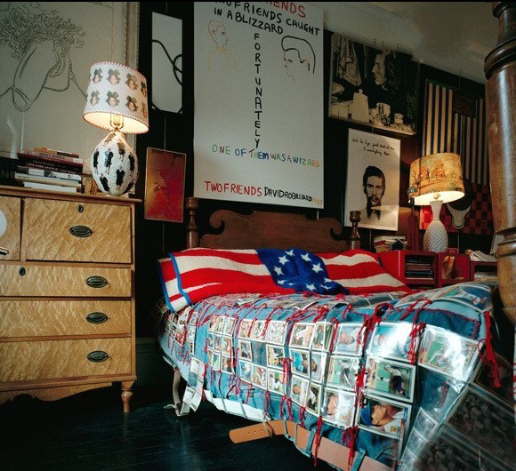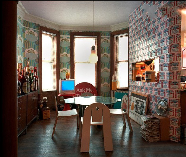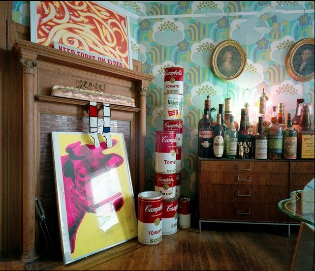 走進(jìn)這個藝術(shù)工作者的家,滿目驚艷。顏色鮮亮的壁紙和復(fù)古的吊燈成為了房間的主題,皇家風(fēng)格的扶手椅旁擺放各式書籍各類油畫……
