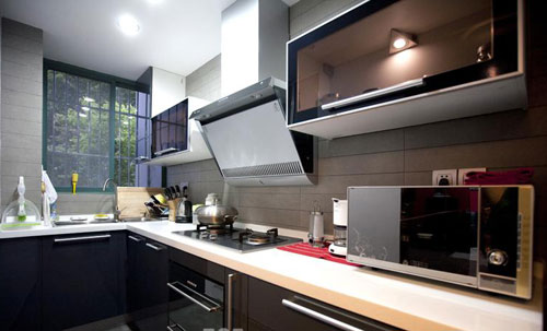 廚房是白色瓷磚搭配黑色柜臺,簡約中不失時尚美感。