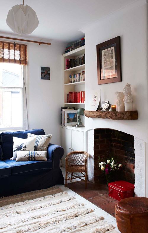 客廳里原先是有設(shè)計壁爐的,可是對于我來說并不實用。就將它去除了??梢宰龀珊唵蔚氖占{用。小戶型空間每一個空間都要做到實用才可以。