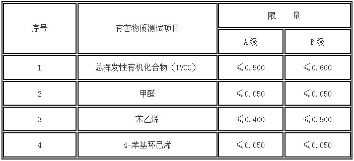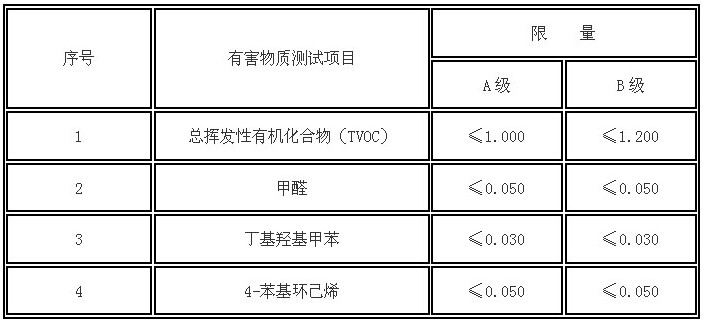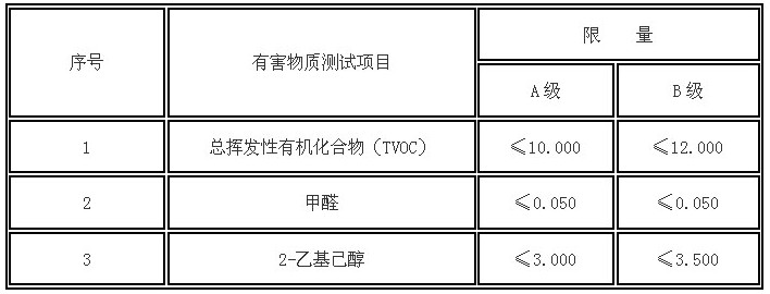 A級為環(huán)保型產(chǎn)品,B級為有害物質(zhì)釋放限量合格產(chǎn)品。
