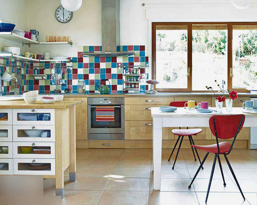 原木色和白色搭配的廚,給人整體淡然的設(shè)計(jì)感;整潔的流理臺(tái)面帶給人以高品質(zhì)的追求;櫥柜臺(tái)面的彩磚背景墻營(yíng)造出豐富的空間層次感。