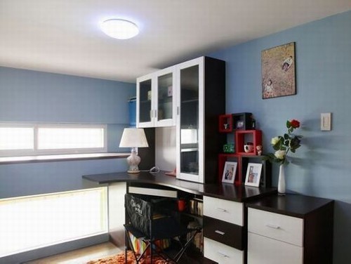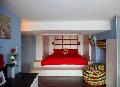 臥室有點(diǎn)地中海風(fēng)格,以藍(lán)白相間的經(jīng)典底色為主色調(diào),但在添加不同顏色后有著不同的心情詮釋,紅黃橙色帶來的暖意洋洋的感覺,在白色的大背景下,使這小空間臥室顯得格外溫馨、舒服。