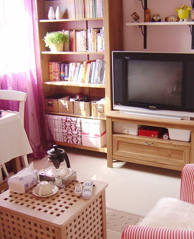 小客廳里各個角落里都充分利用了,做為婚房,顏色都是偏向暖色調(diào),也與韓式風(fēng)格相互應(yīng)。小空間里電視柜,書架,沙發(fā)茶幾都是一樣不少的,雖然空間面積不大,但是依然非常豐富,淡淡的居家溫馨感。
