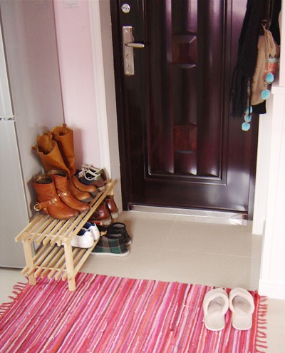 走進這個小戶型,我們在各個小細節(jié)都能驚艷到。進門的玄關(guān)處,擺放了簡潔的兩層木質(zhì)鞋架,日常換鞋正合適。不能像在其它空間里一樣,玄關(guān)處放置一個鞋柜,雖然美觀但是空間限制了,我們只能想其它方法,但是效果達到了。這個業(yè)主MM自己淘來的。