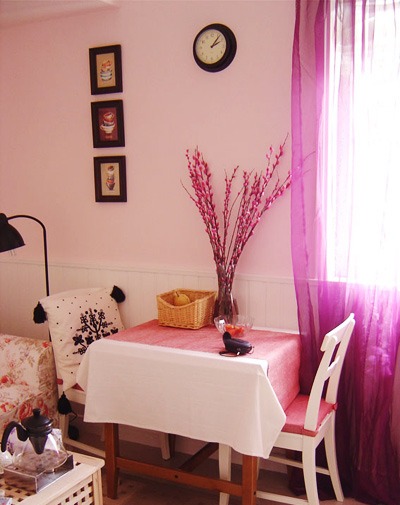 二人世界里的餐桌,靜靜的擺放在客廳的一角。色調(diào)溫馨,愛意濃濃,似乎可以聽見就餐時的竊竊私語。