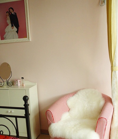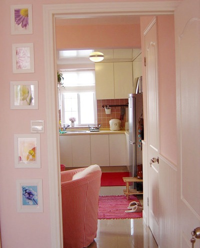 整個屋子都是淡淡的粉紫色,這里通往臥室的過道。