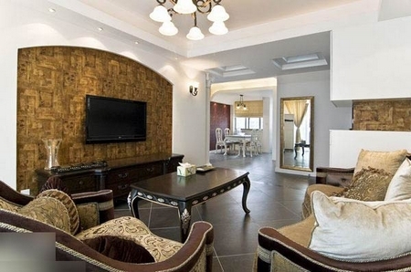 電視背景,木紋配白墻,鮮明的對(duì)比色,歐式風(fēng)格混搭進(jìn)時(shí)尚元素。