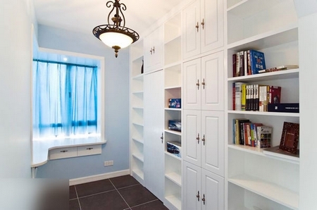 書房藍(lán)白色搭配,給人清新自然的感覺。